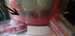 Un peu de jus reste dans le fond, il suffit de le secouer, tout coule dans le bol - voir droite: rien ne reste dans le mécanisme. Super!