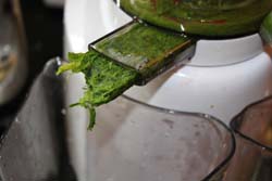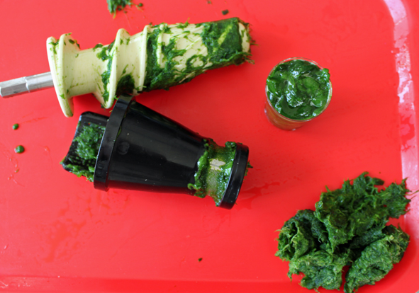 Je n'aime pas la sensation fibreuse du vert de poireau dans les potages, j'ai pris l'habitude d'en presser le jus pour le rajouter deux minutes avant la fin de la cuisson. Cru : imbuvable ; trop cuit : j'y perd une partie de ma précieuse vitamine K. J'utilise aussi le Max pour extraire le jus des cosses de petits pois, cosses que l'on jette normalement. J'en fais une crème de pois divine. Etc etc... avec tout ce qui est trop fibreux et qu'on jette d'habitude.