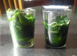 VGB: le seul qui fait du vrai jus de poireaux, pas du gel. Enfin du jus plus que de la mousse, tel que je le produisais avant 2008 avec les Jazz - photo de droite: gauche = JU; droite = VGB