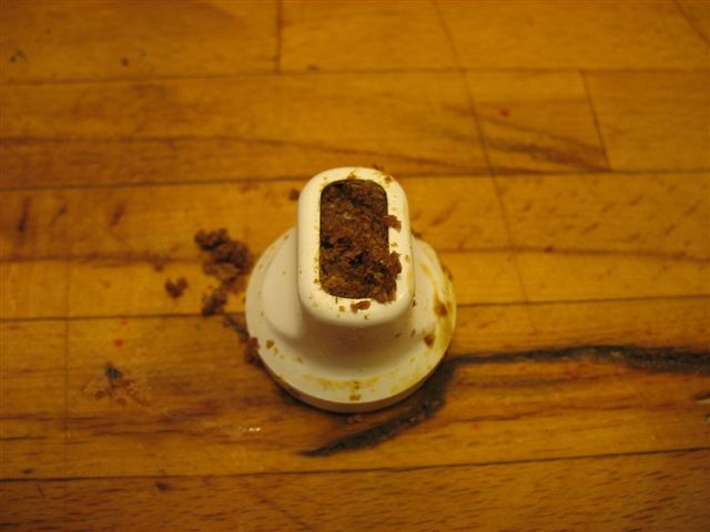 Au lieu de verser doucement, comme je l'ai moi même suggéré dans le mode d'emploi que j'ai rédigé pour l'importateur, j'ai bien bourré la machine et j'ai forcé dès qu'elle coinçait, au lieu d'arrêter, de nettoyer et de recommencer doucement.