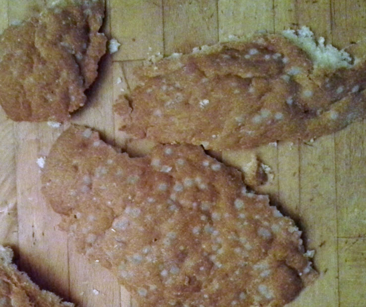 En outre, je ne suis pas étonnée de découvrir les études qui repèrent la catastrophique formule sanguine des pratiquants du sans-gluten (études récentes aux States). Il y a 3 ans, perturbée de voir tant de monde entrer dans le monde de l'aventure en suivant les conseilleurs de substitut, j'ai photographié un pain sans gluten artisanal, que personne dans la famille n'avait mangé par manque d'attrait. En cinq jours, il a moisi et s'est couvert de champignons tels que je n'en ai jamais vu en cuisine.