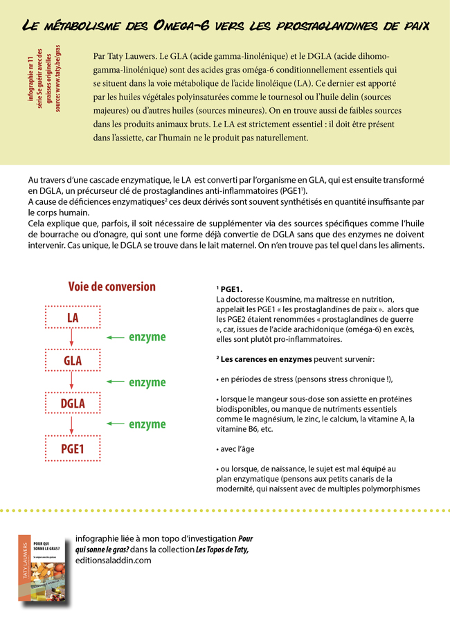 4.4.2026 Poster nr 11 de la série "Se guérir avec des graisses originelles" : comprendre comment des carences enzymatiques peuvent perturber la conversion des oméga-6 des huiles végétales en précieux eicosanoïdes ou PGE1.