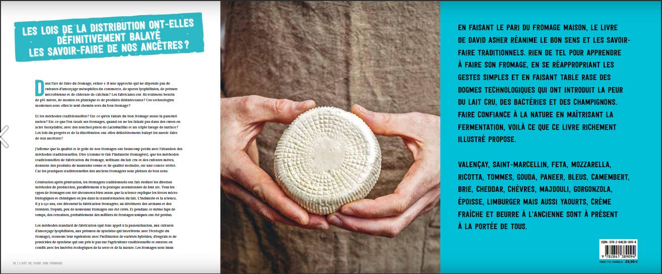 L'auteur. David Asher est un résistant de la première heure et un passionné de fromage. Il est éleveur, producteur de lait dans une petite ferme biologique du Canada, dans les îles du Golf d'Islande, dans la région de Vancouver. Il organise des formations à travers le monde, dans le cadre de son association The Black Sheep School. Il nous explique sa démarche dans une courte vidéo réalisée lors de son passage à Paris.