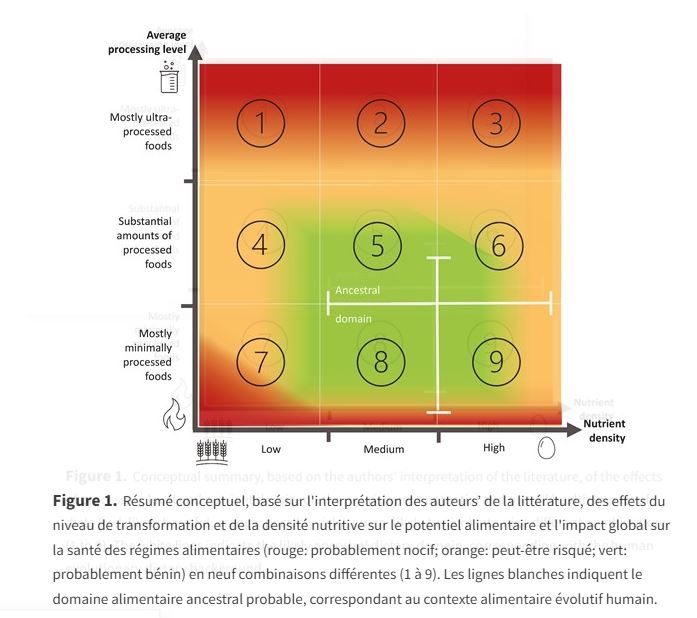 Lire à ce sujet le dernier papier de Leroy et al, dont l'image ci-dessous est extraite (traduite par robot) "A framework for adequate nourishment: balancing nutrient density and food processing levels within the context of culturally and regionally appropriate diets" (dans Animal Frontiers, Volume 15, Issue 1, February 2025 https://doi.org/10.1093/af/vfae032)